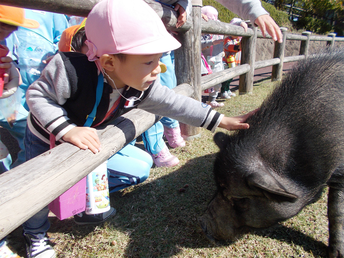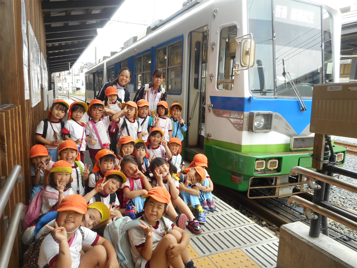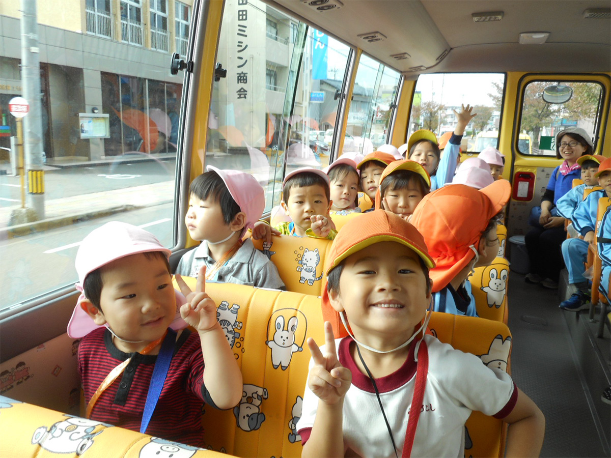 園バスを利用し、年齢に合わせた園外保育を大事にしています。園内とは異なる環境で新しい経験をすることで、五感や感性が豊かになります。園外保育を終えた日や翌日に感想を聞くと、自分が感じたことや嬉しかったことを目を輝かせながら感動を共有してくれます。このような体験を通して社会生活のルールやマナーを身に付けることが出来ます。